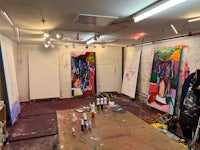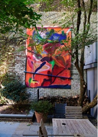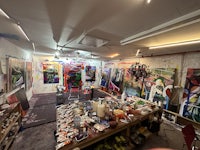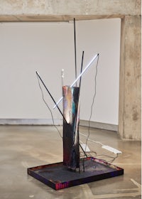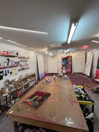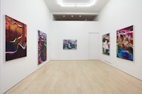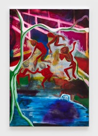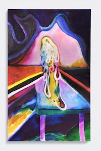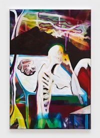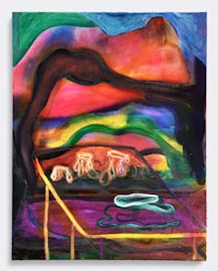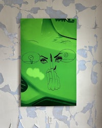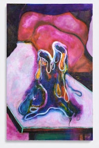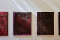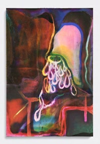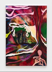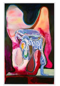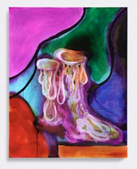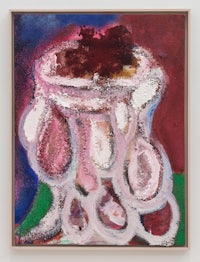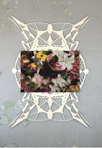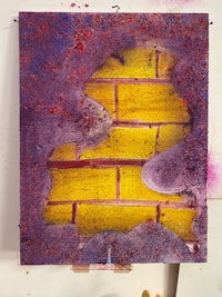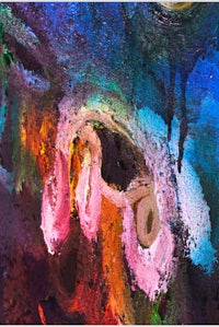 Oil, alcohol ink, flocking, glass beads on panel in artist frame